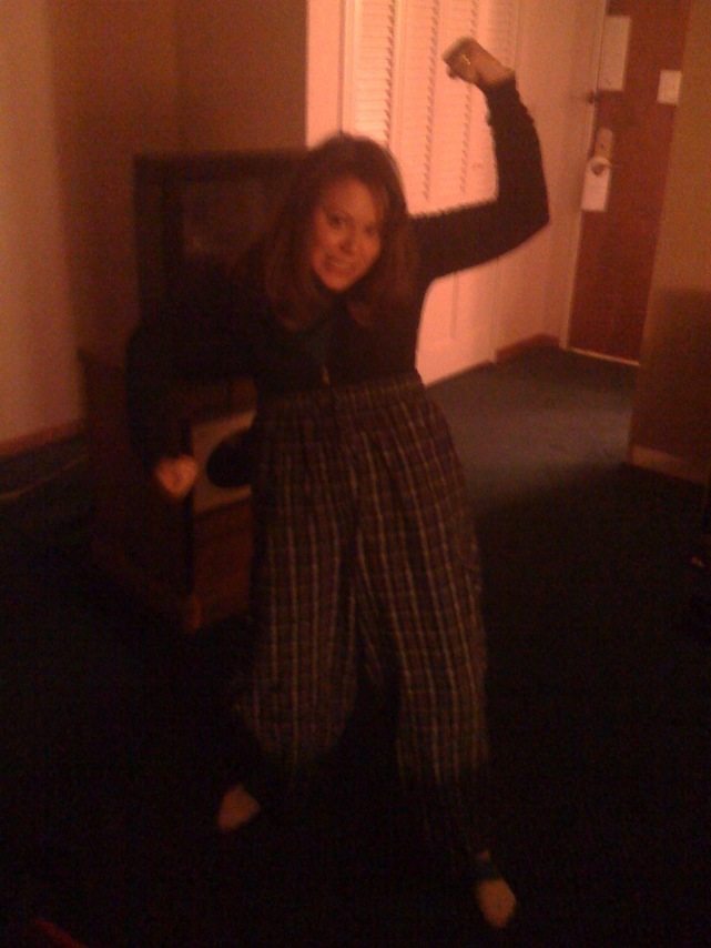 Normally I would not share such a scandalous dorky silly picture of myself with the Internet world… however the WordPress Weekly Photo topic intrigued me. In this picture I am wearing my husband Ryan’s pajama pants. We were in a hotel room in Rochester, MN. We were goofing around and laughing… having a great time. It was the night before my open heart surgery in 2010. We were getting ready for bed and i wanted to make Ryan laugh! I put those pants on and pulled them up to my armpits and posed like an old man flexing… Ryan is 6’4″ and his pants are way to big! Mission Accomplished!